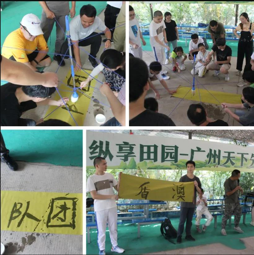 吃飽喝足后,拓展活動正式開始,組隊起隊名,喊口號,唱隊歌,排隊形,大家集思廣益,創(chuàng)意無限。